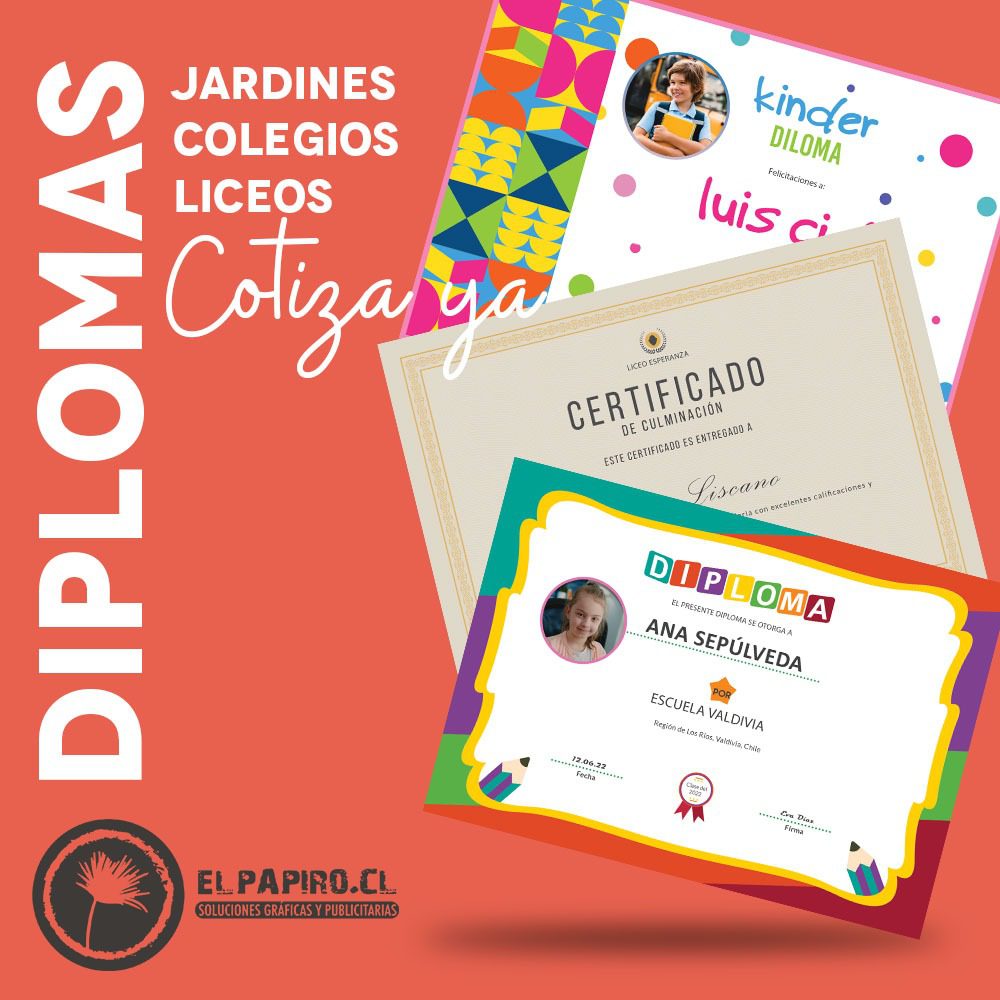 El Papiro se especializa en la creación de diplomas de licenciatura personalizados, perfectos para conmemorar momentos significativos en la vida educativa de los estudiantes. Nuestros diplomas son ideales para niños que terminan kínder, estudiantes que completan octavo año de enseñanza básica y aquellos que culminan cuarto año medio. Cada diploma se diseña y elabora con una atención meticulosa al detalle, garantizando un recuerdo duradero y de alta calidad.